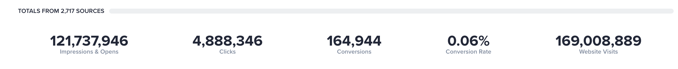 Impressions and/or Opens | Measures the number of ad impressions served and emails opened. This metric will automatically take into account all of the channels that are active for the account. |
