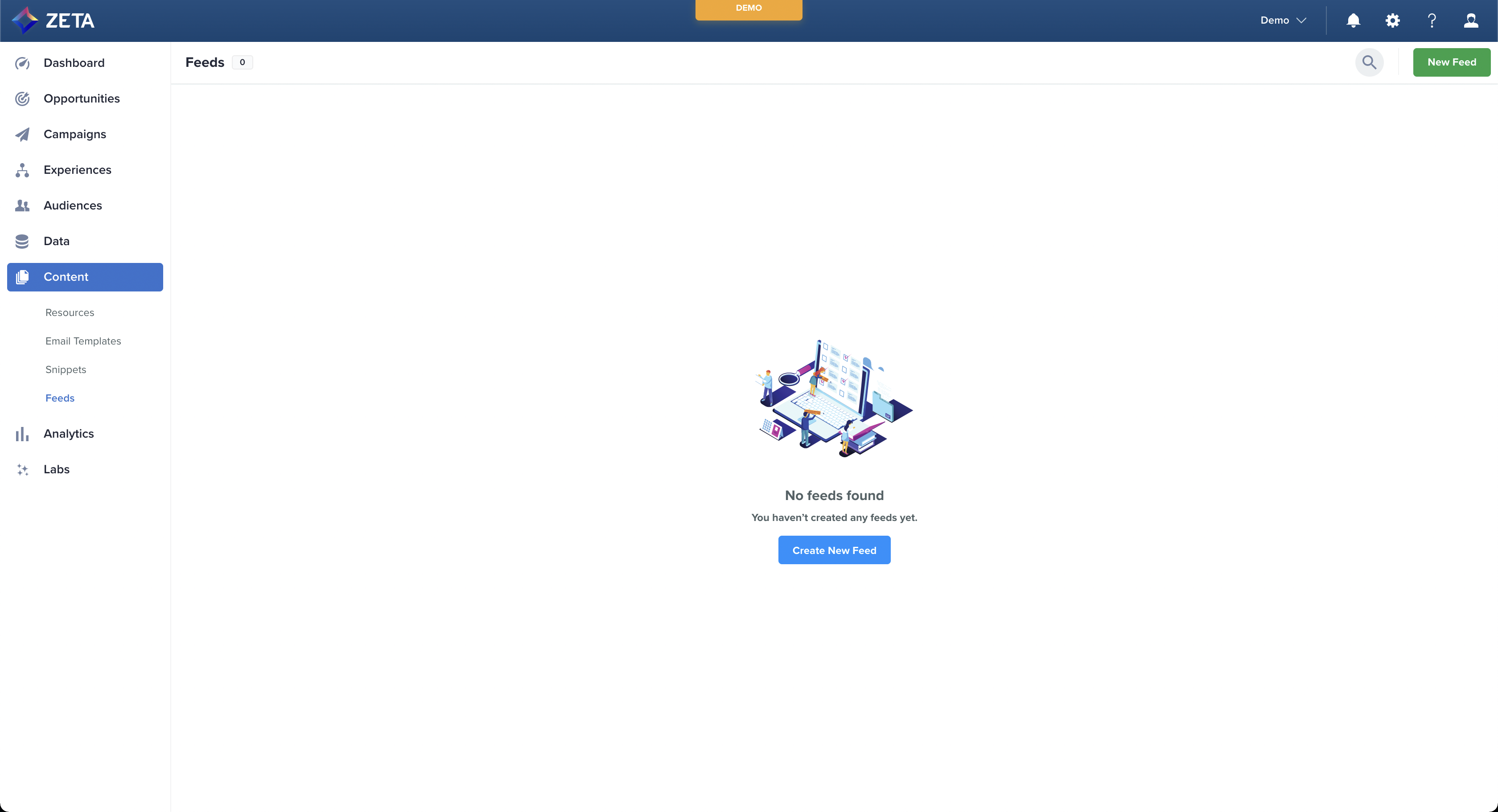 Zeta can enable a content collection feature to help you create up-to-date content feeds from your website. For example, product descriptions, pricing, and availability from your site can be compiled in a feed. This feature can focus on actual pages visited by your customers to ensure site resources are focused on the content your customers are actually viewing. To enable this feature, simply reach out to your account manager.