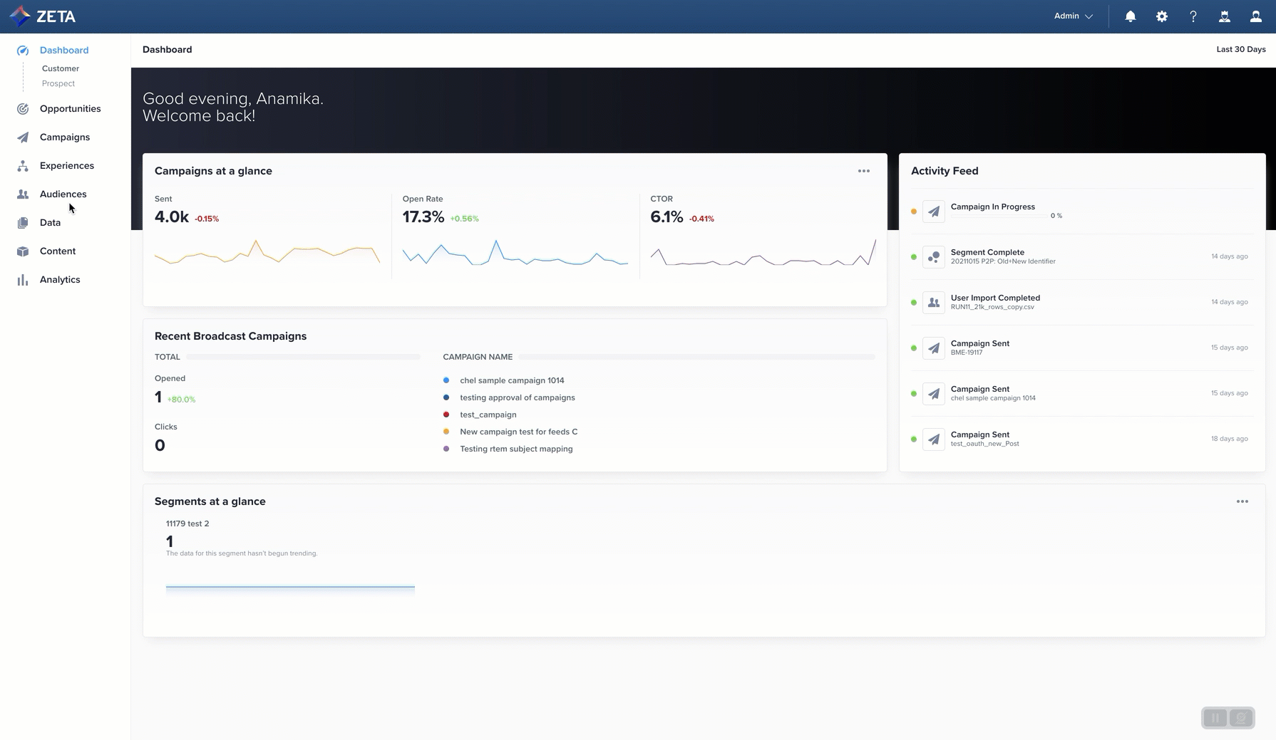 1. From the menu on the left, select Audiences > Segments & Lists. Click on Explore Audience.