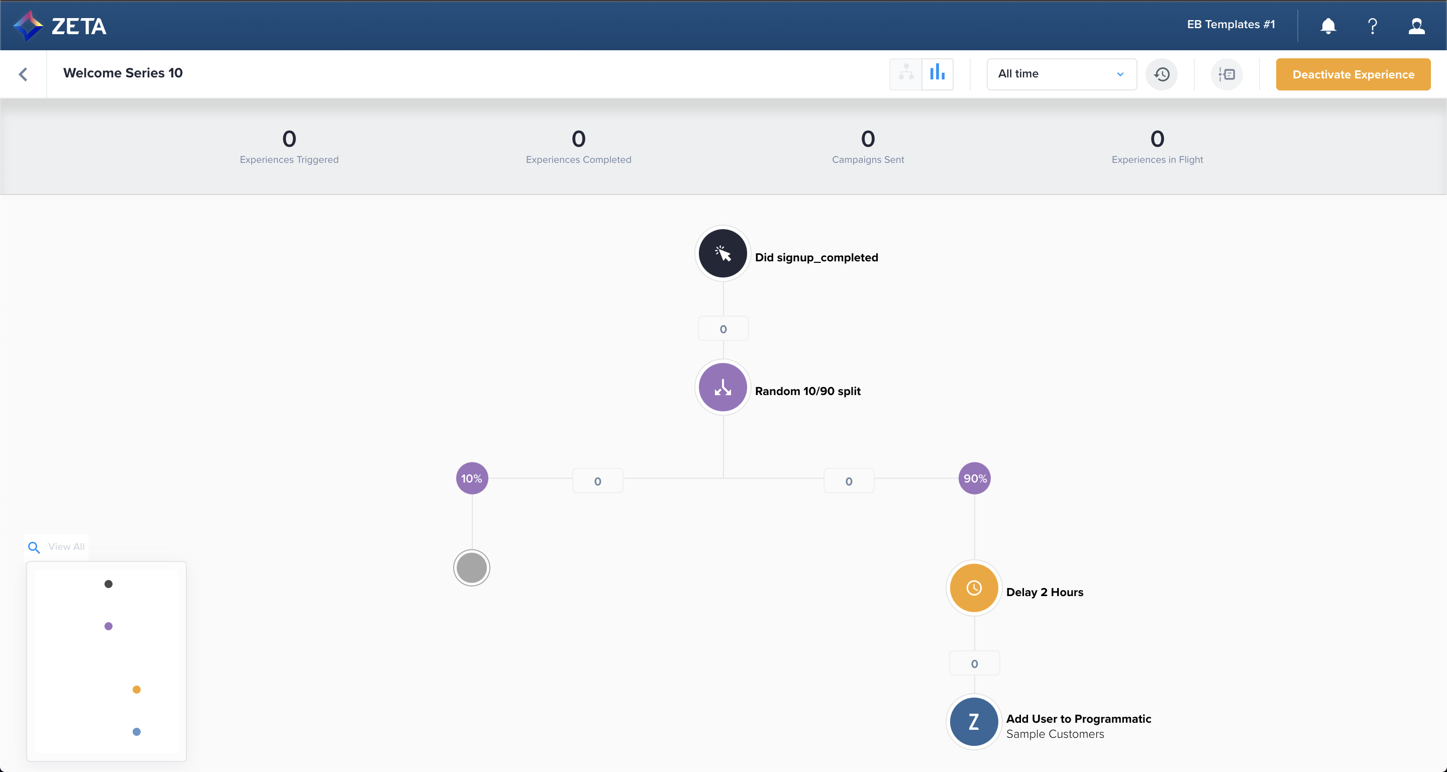 4. Once you confirm, your experience will be in flight, and you can monitor stats as people enter and pass through the nodes.
