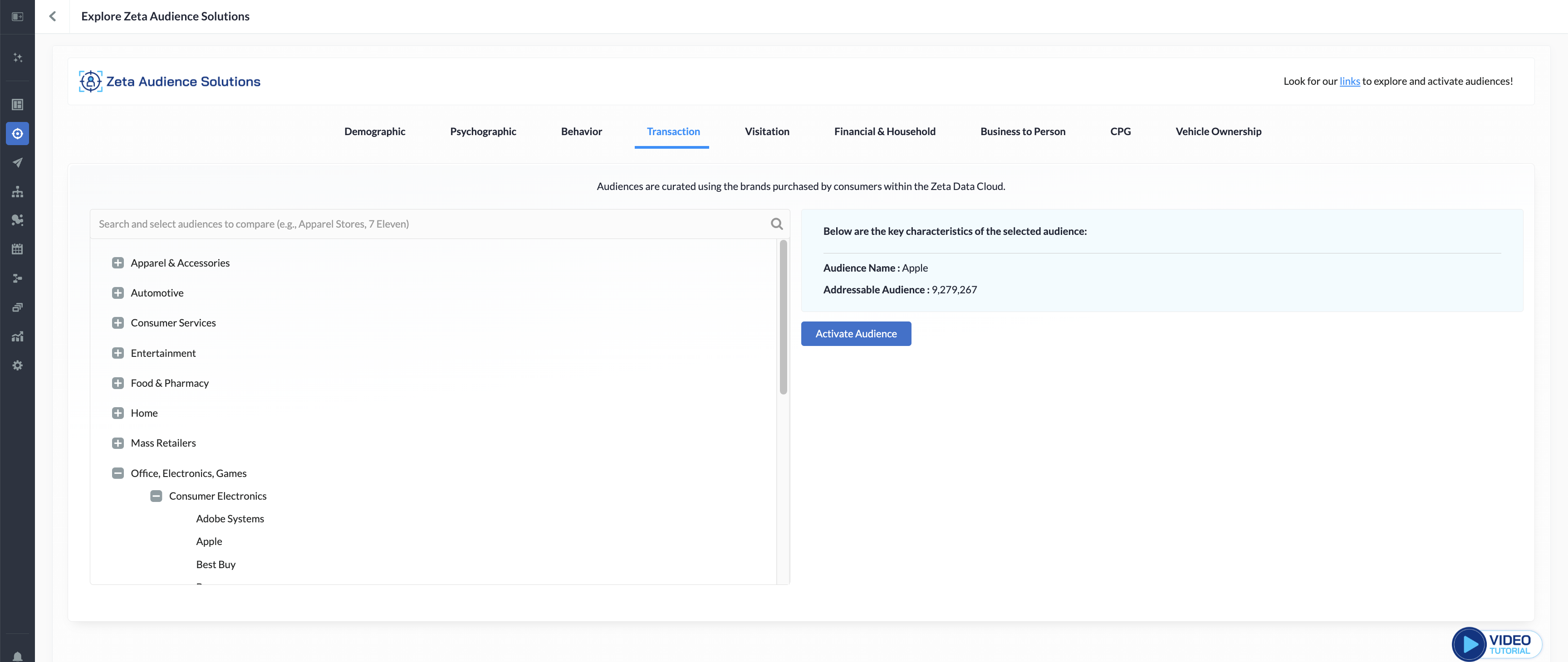 These audiences are curated using the online browsing behavior exhibited by consumers within the Zeta Data Cloud.