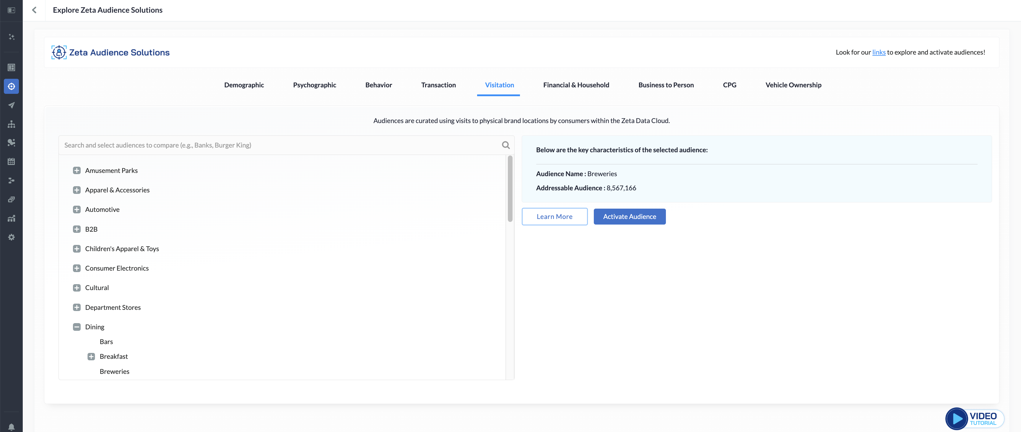 These audiences are curated from visits to physical brand locations by consumers within the Zeta Data Cloud.