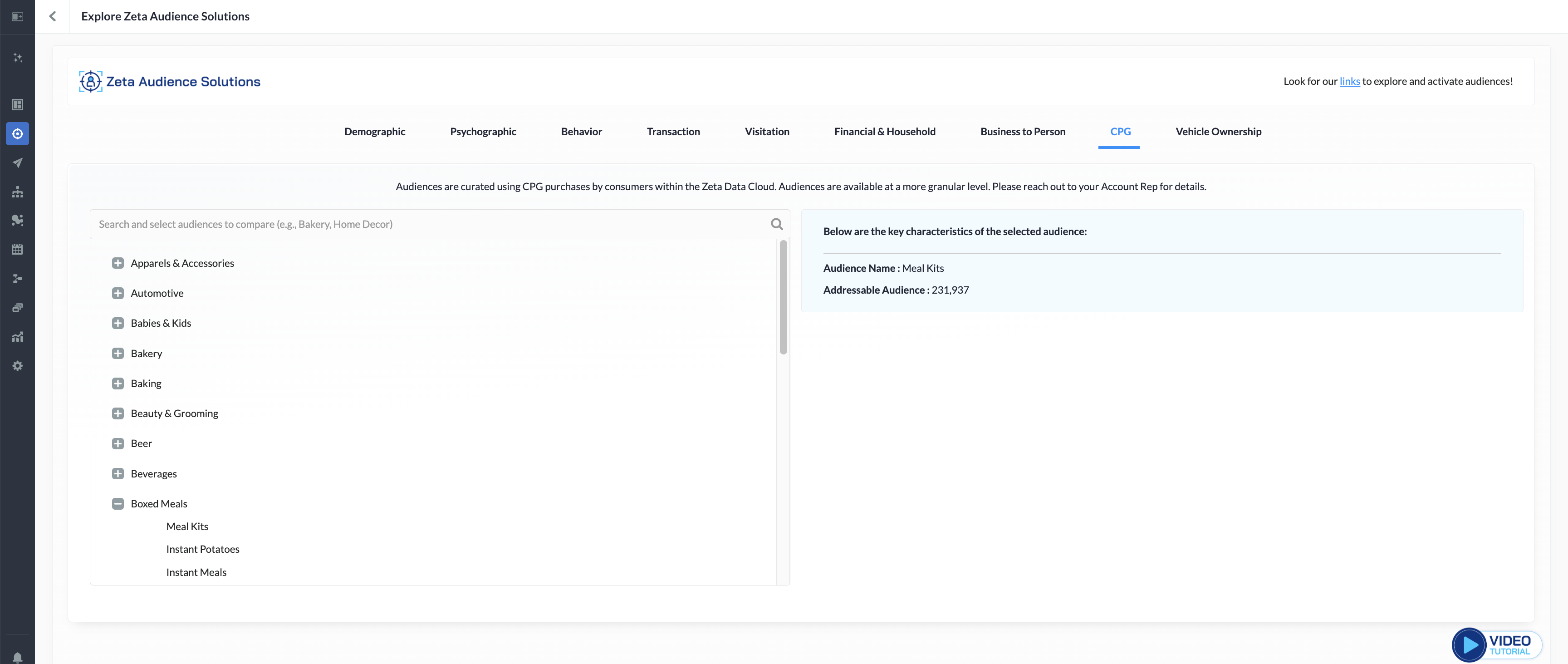 These audiences are curated using Consumer Packaged Goods (CPG) purchases by consumers within the Zeta Data Cloud.