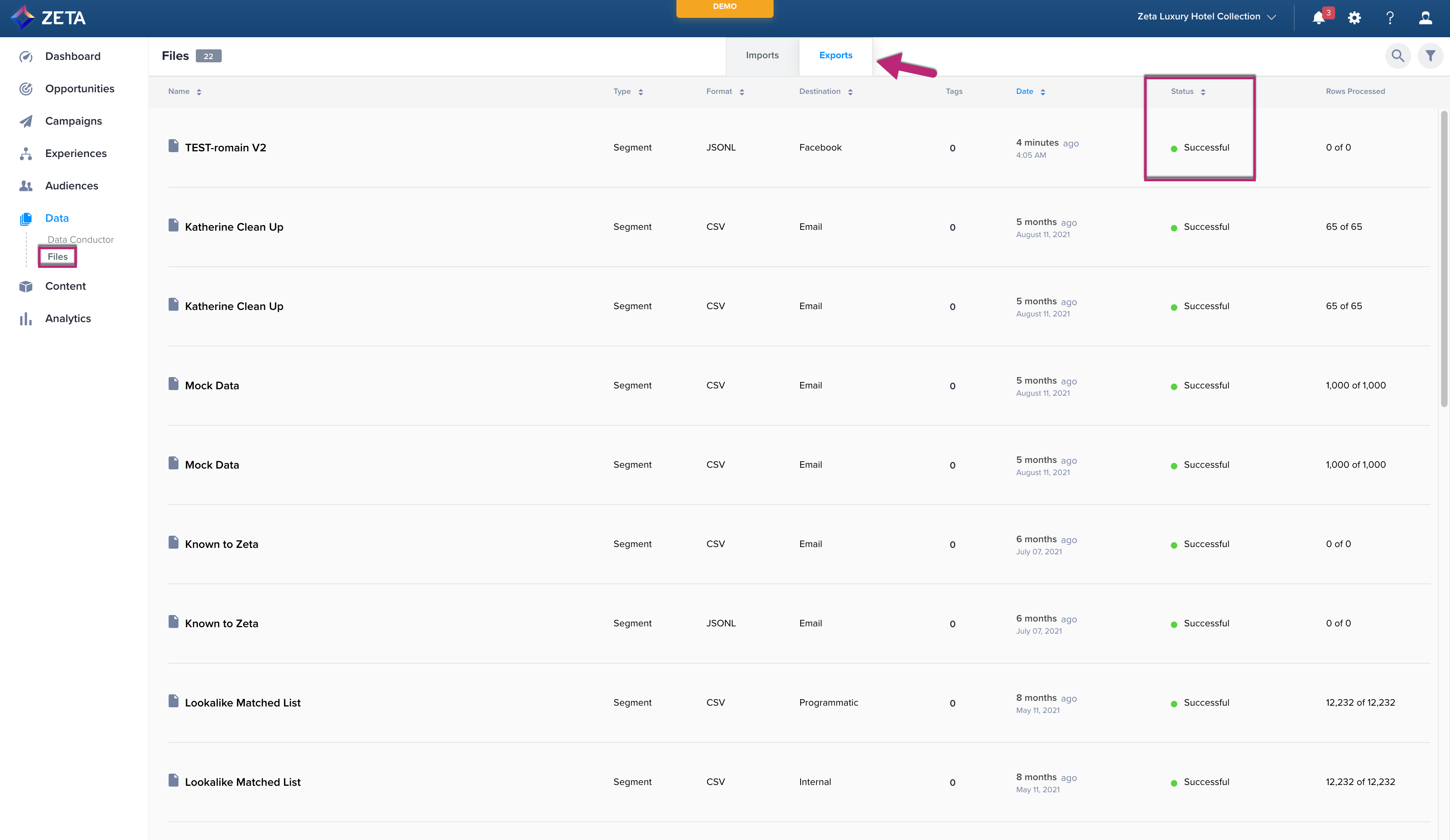 1. Click on Data on the left-hand navigation to open the Files page.