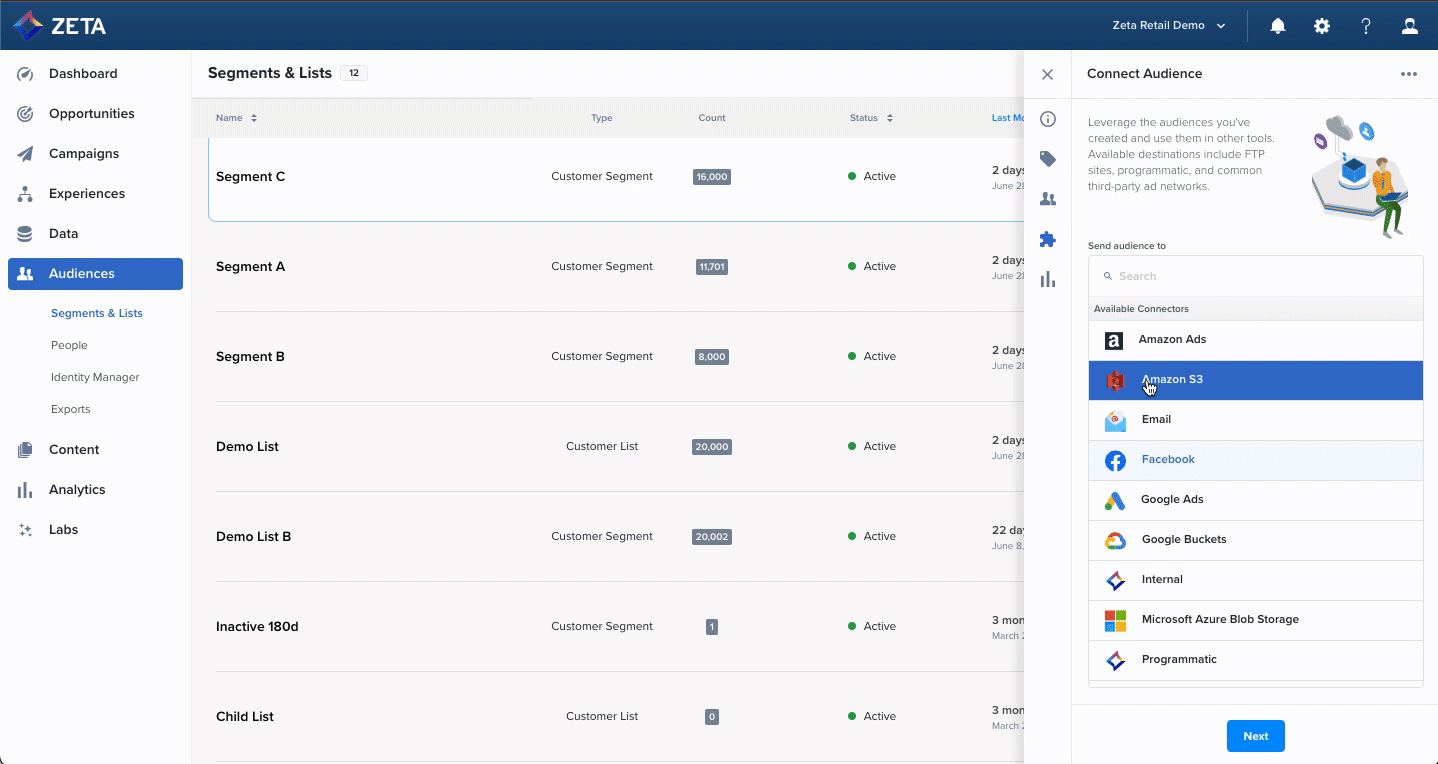 Businesses that derive value from data have always had an edge over the competition and continue to do so even today. In order to leverage the value of data and be able to offer connected customer experiences, companies have started embracing digital transformation by adopting new technologies and opening doors to new integrations and acquisitions. The kind of integrations that enable users to connect faster and streamline transactions with their customers, thus improving the ease of doing business, is the kind that you need! To that end, the Zeta Marketing Platform has introduced the Facebook connector for prospect audiences.