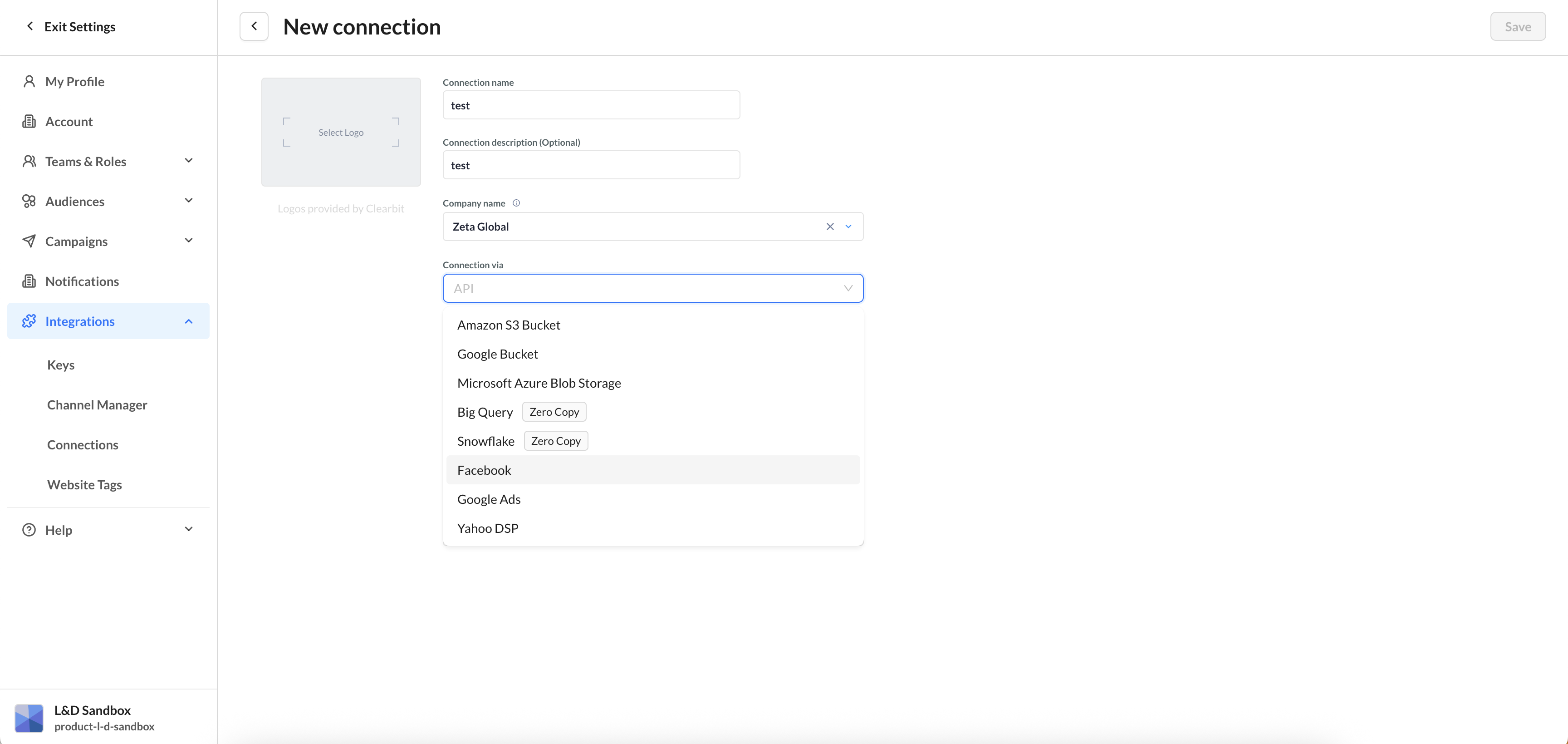 1. On a new Connection page, select Facebook from the Connection via dropdown list.
