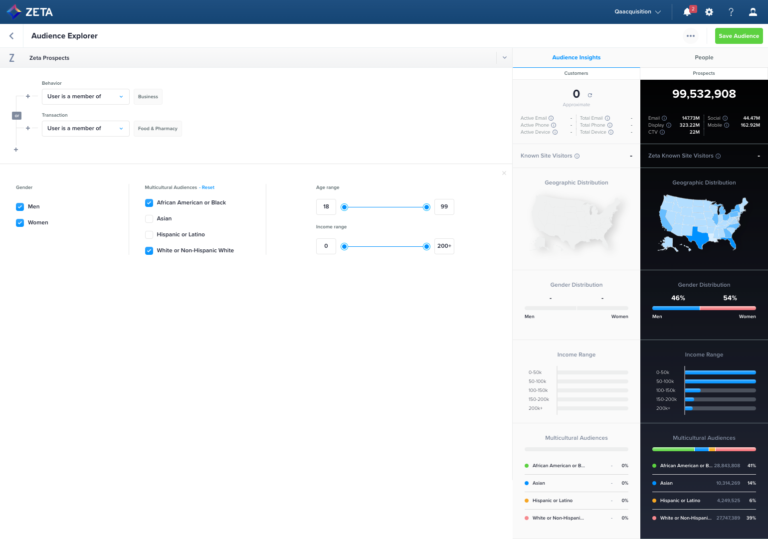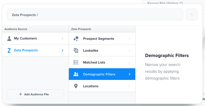 1. Navigate to Audience Explorer and select Zeta Prospects > Demographic Filters.