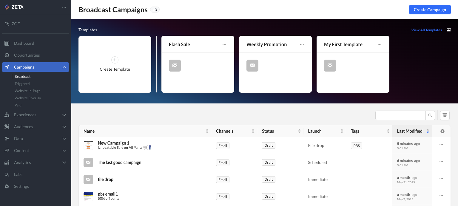 Building similar campaigns repeatedly? Now, you can save time and improve accuracy with the new Campaign Templates feature in the ZMP. Instead of cloning past campaigns or starting from scratch, you can now: