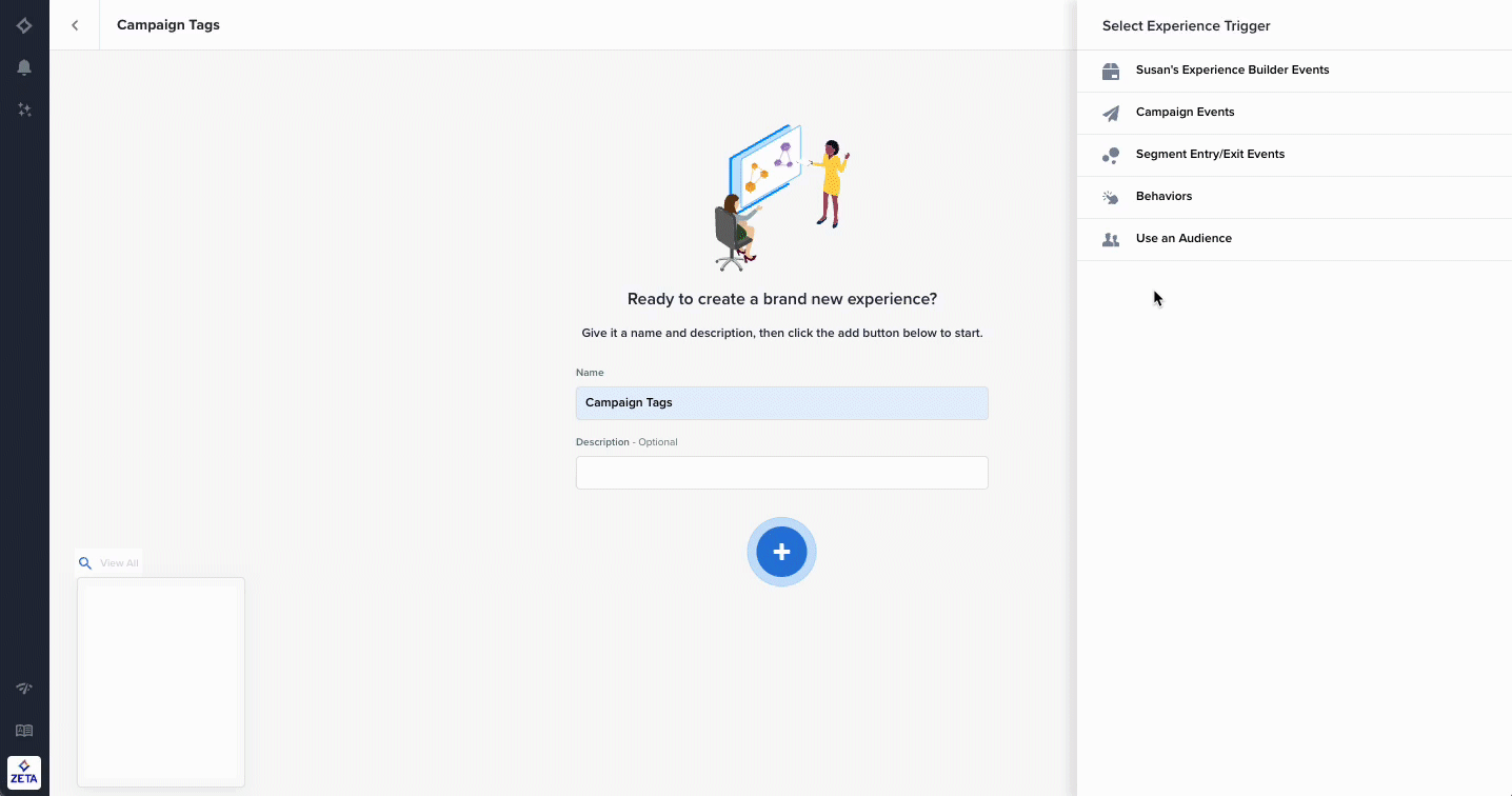 The new Use an Audience trigger in Experience Builder allows you to push an entire set of people into an experience at once, combining the power of journey orchestration with the control of audience selection and Broadcast Campaign functionality. After the audience is triggered, each person will move through the experience asynchronously so you can continue to provide personalized campaigns based on specific events they complete. |