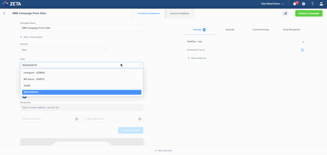 ZMP accounts can now have multiple sender numbers. You can select which number to send each SMS/MMS campaign from, allowing you to have separate message conversations with your customers. Please contact hubsupport@zetaglobal.com to set this up on your account. |