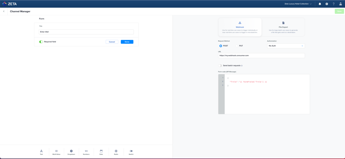 Channel Manager now allows you to designate specific form fields as optional, providing more flexibility when setting up new channels and destinations. |