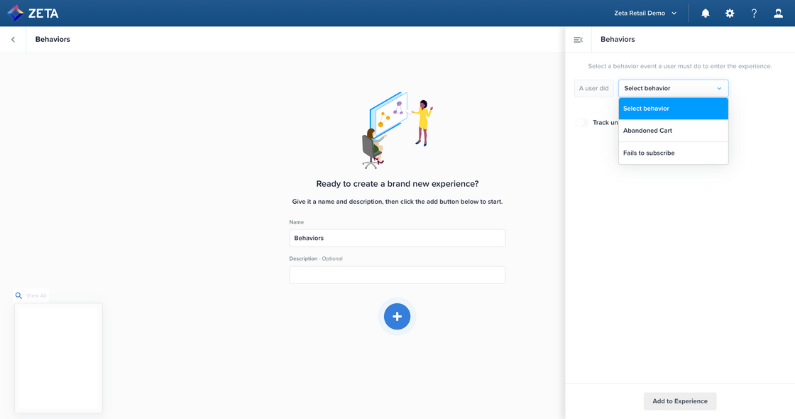 We’re excited to share new updates to Experience Builder that give ZMP users more control over experience entry/exit criteria and campaign performance measurement. Experience Options gives you an unprecedented level of targeting control for your workflows. Set entrance criteria based on previous entrances (lifetime, simultaneous, and recent) and/or segmentation criteria (e.g., segment membership and people properties). And set global exit criteria that automatically eject people who complete an event that no longer qualifies them for your experience at any point in their journey. |
