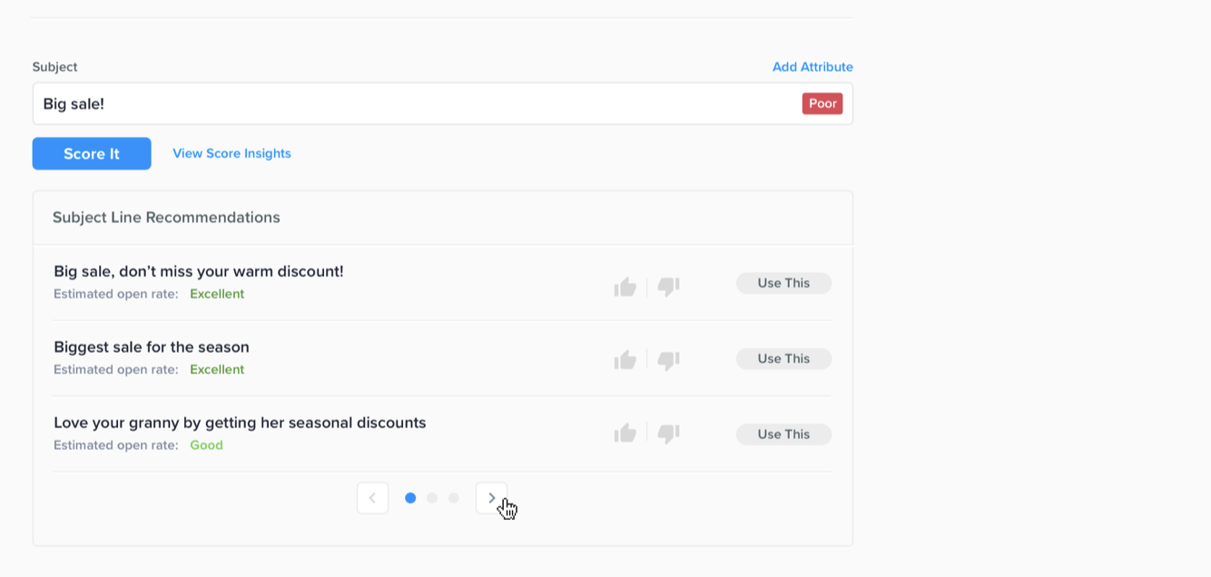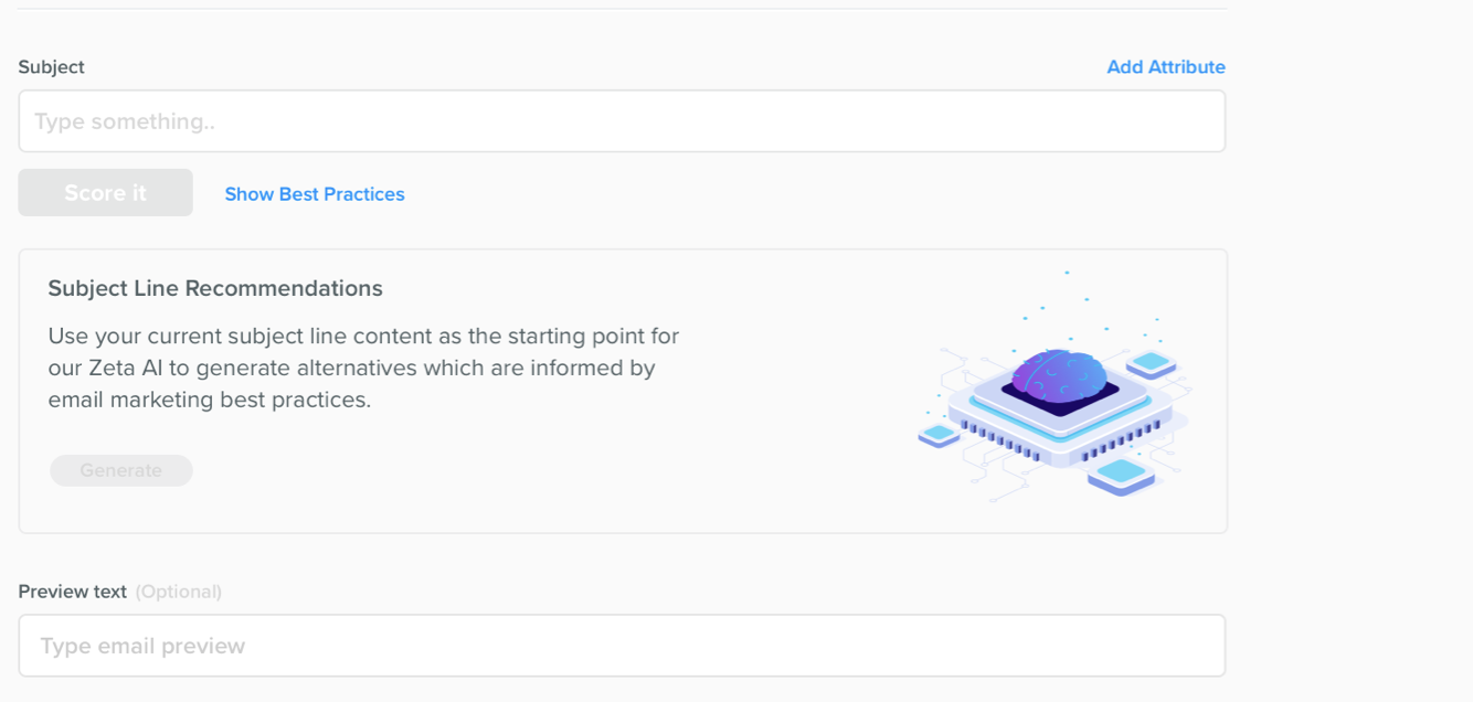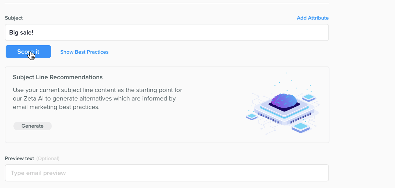4. Alternatively, you can add in your own subject line and let the platform score it based on its set best practices.