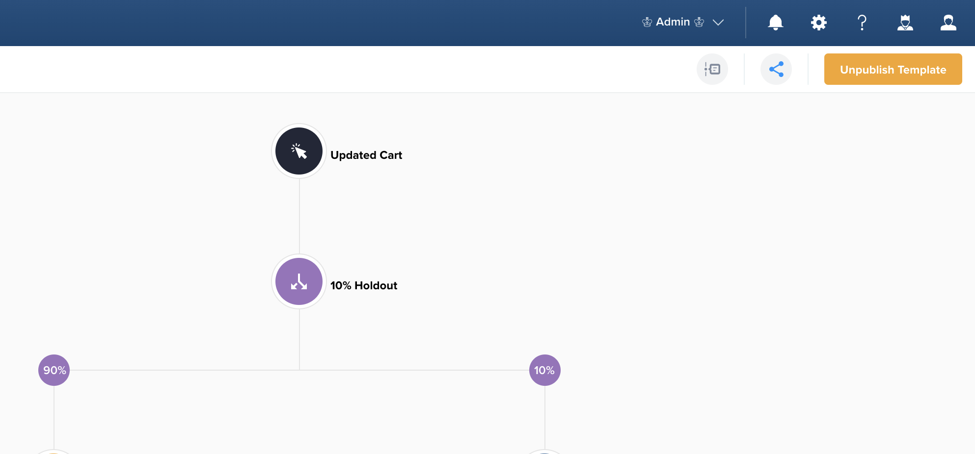 3. Your template is now published and ready to be shared. Your required action nodes are filled so that the canvas looks how the completed experience is intended to look.