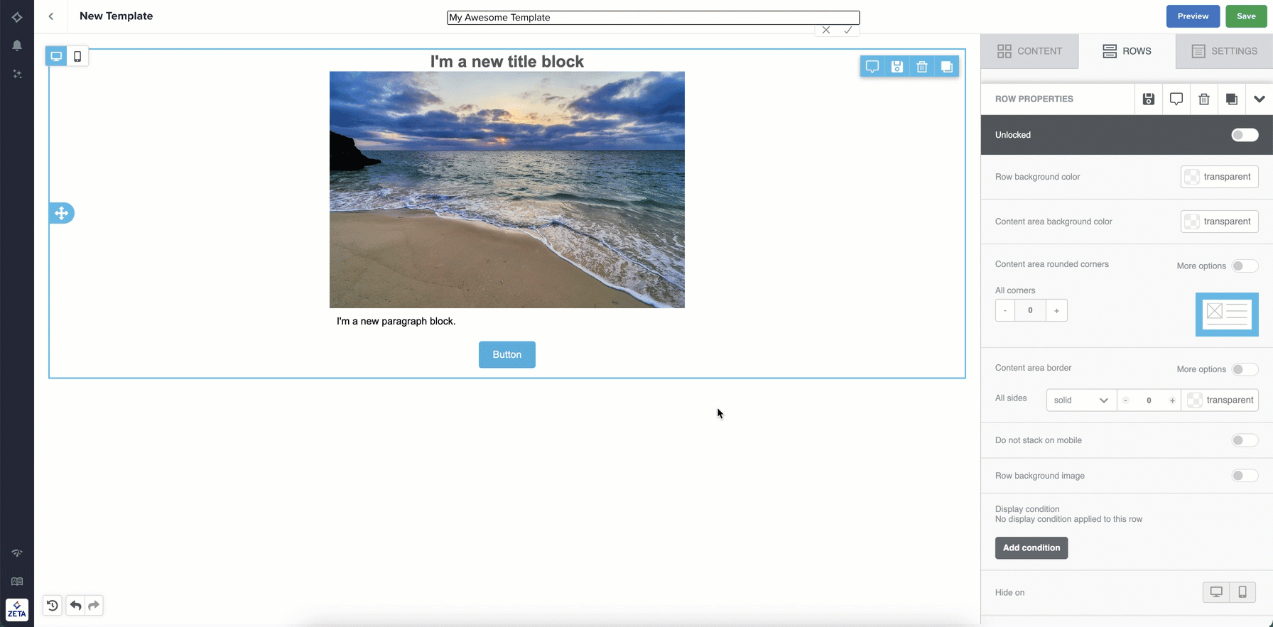 Rows are used to define the general structure of your email, help break up the template, and enhance the flexibility of settings that need to be set for specific parts of the email.