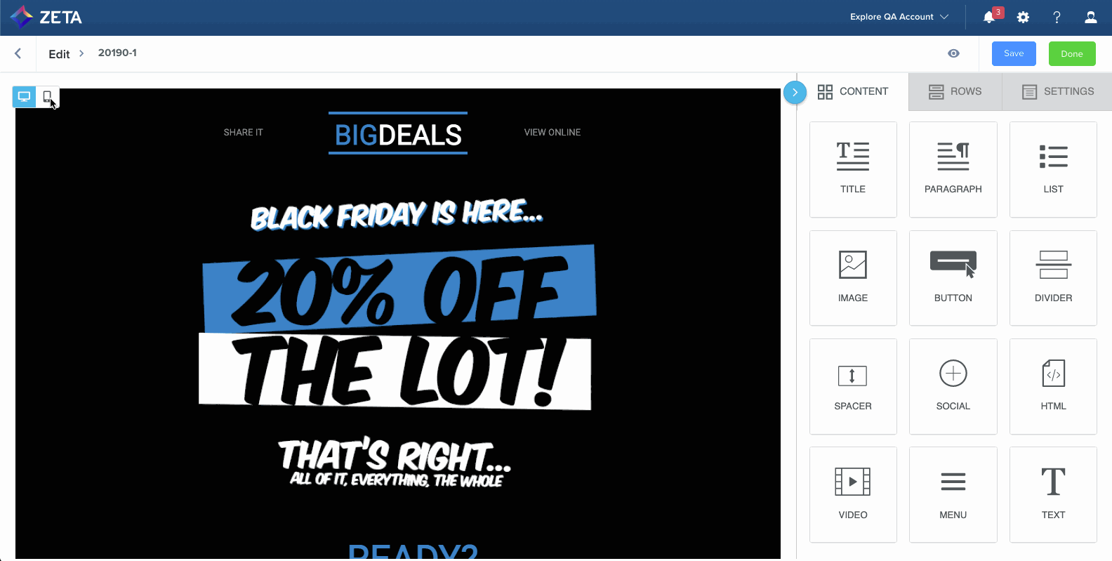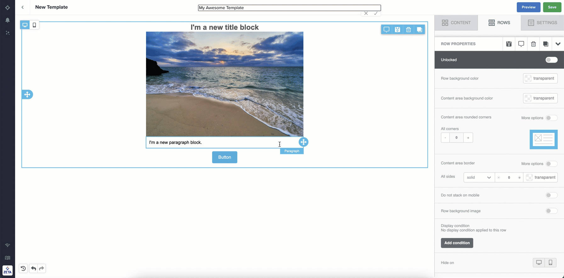 The Visual Editor in the Zeta Marketing Platform enables marketers to focus more on content and less on writing, maintaining, and fixing HTML.