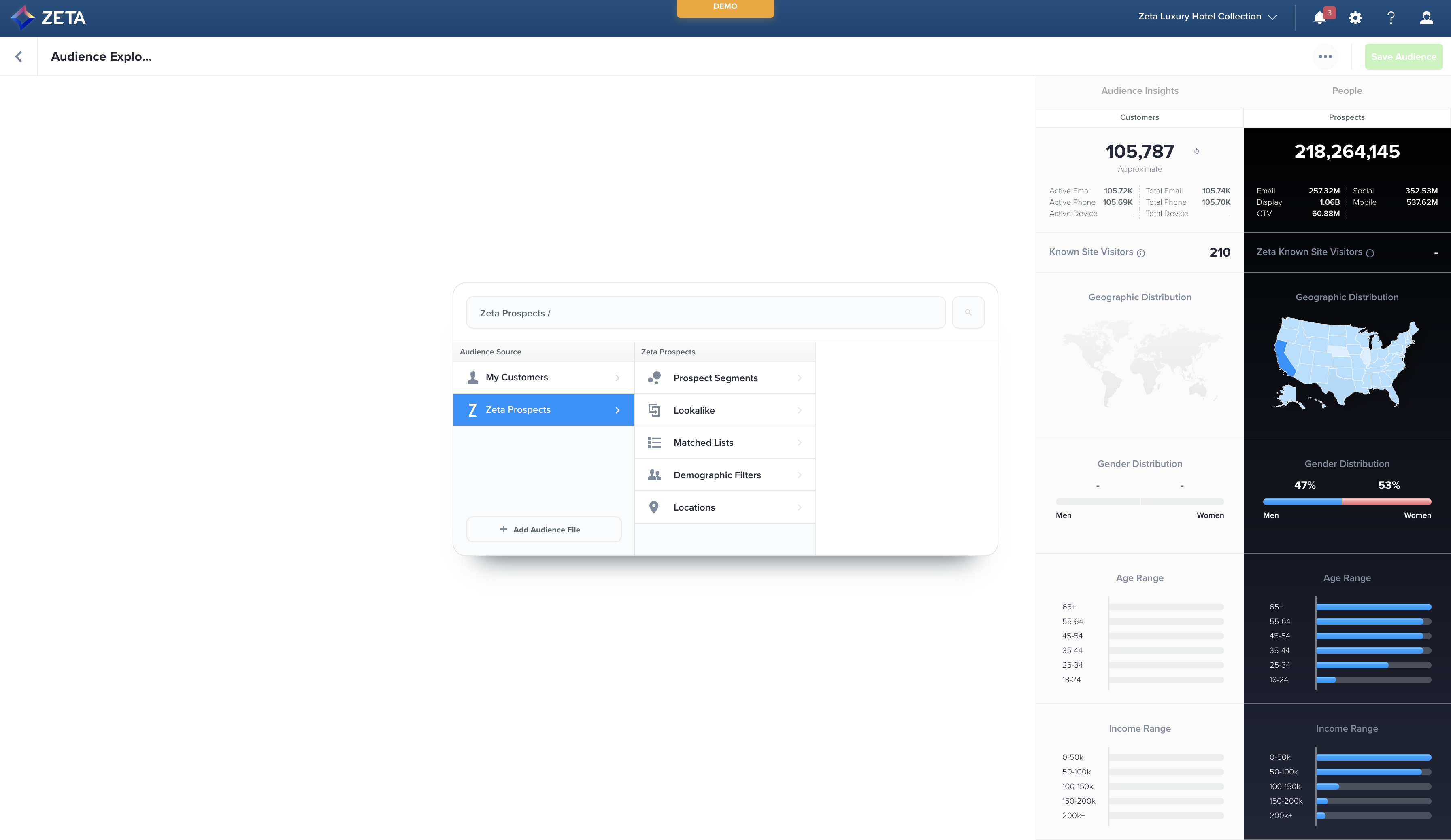 The Unified Audience Explorer allows you to create Prospect Audiences to reach people outside your first-party data sphere by tapping into Zeta’s powerful Data Cloud.