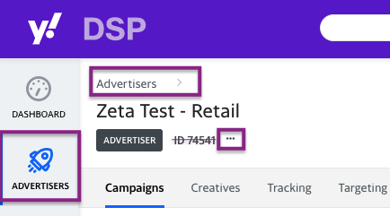 4. To find your MDM ID, you will need to log in to the Yahoo DSP and navigate to Advertisers. It is very important to ensure you copy and paste the exact MDM ID for your account so that your segments are successfully created in the right place.