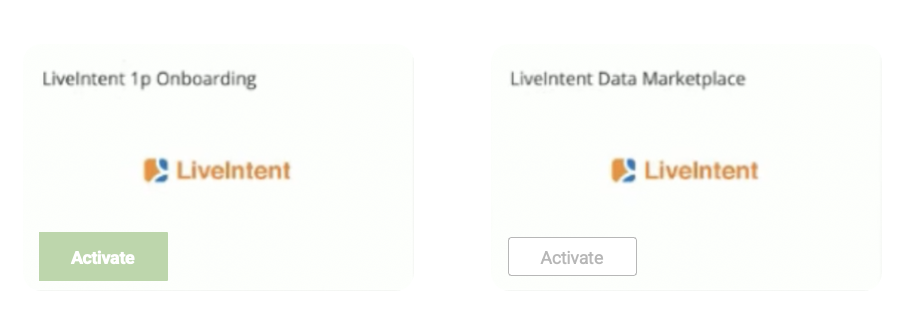 After creating the LiveIntent destination, you can select your desired integration type. For first-party data, activate the LiveIntent 1p Onboarding tile. If sending third-party data, activate the LiveIntent Data Marketplace.