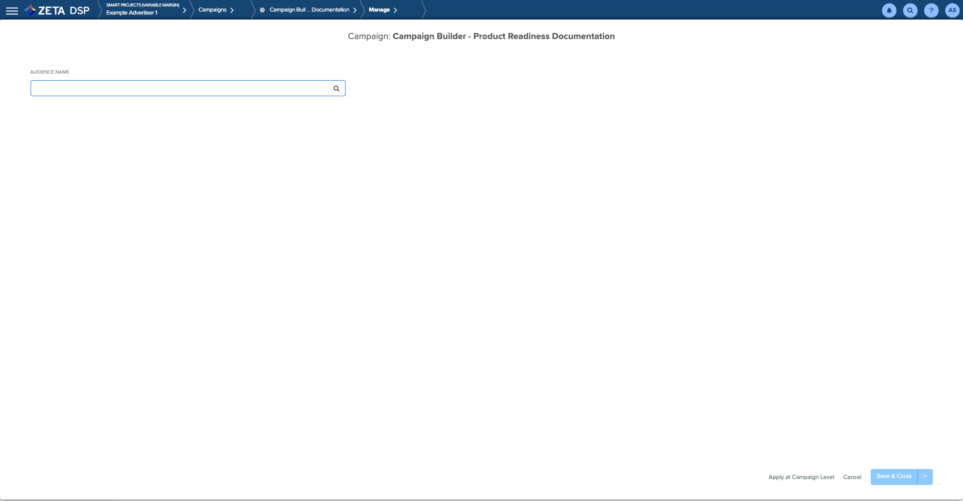 3. Search an Audience Name you wish to target. The DSP will highlight the Audience by changing the text and background color, as well as adding a border.