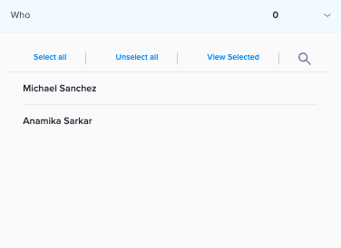 3. For each Filter, you can Select All, Un-select all, or View Selected.