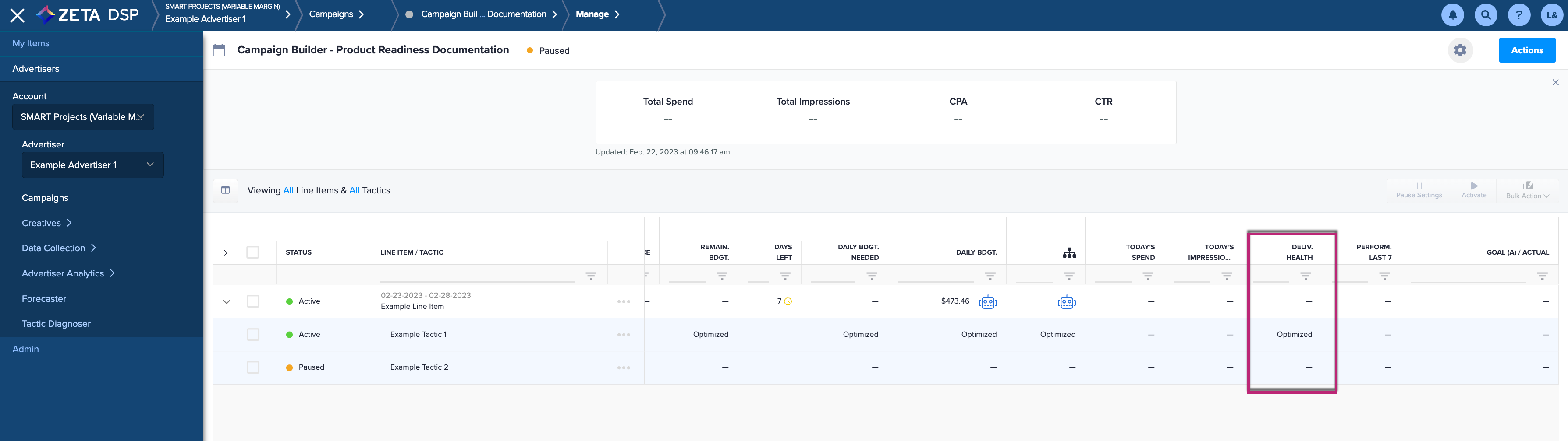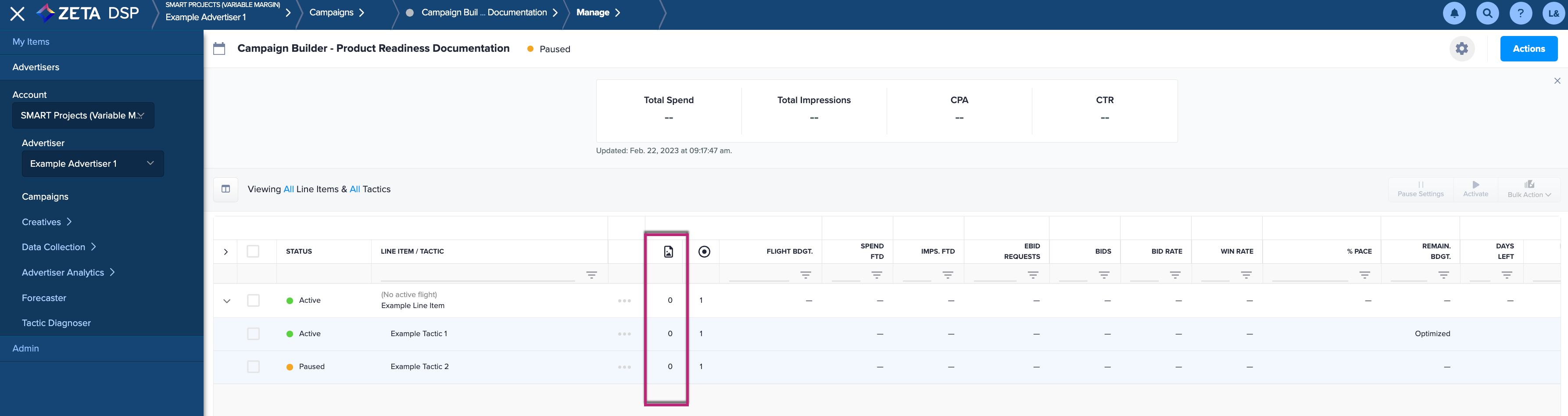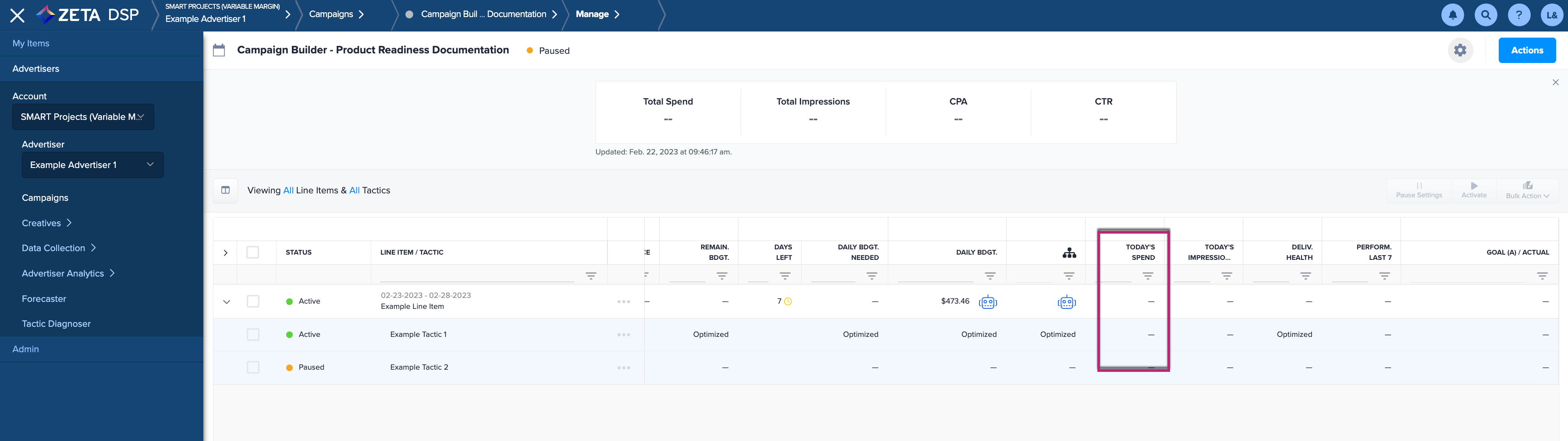 This column shows the overall performance for a line item or tactic over the last 7 days (not including the current day).