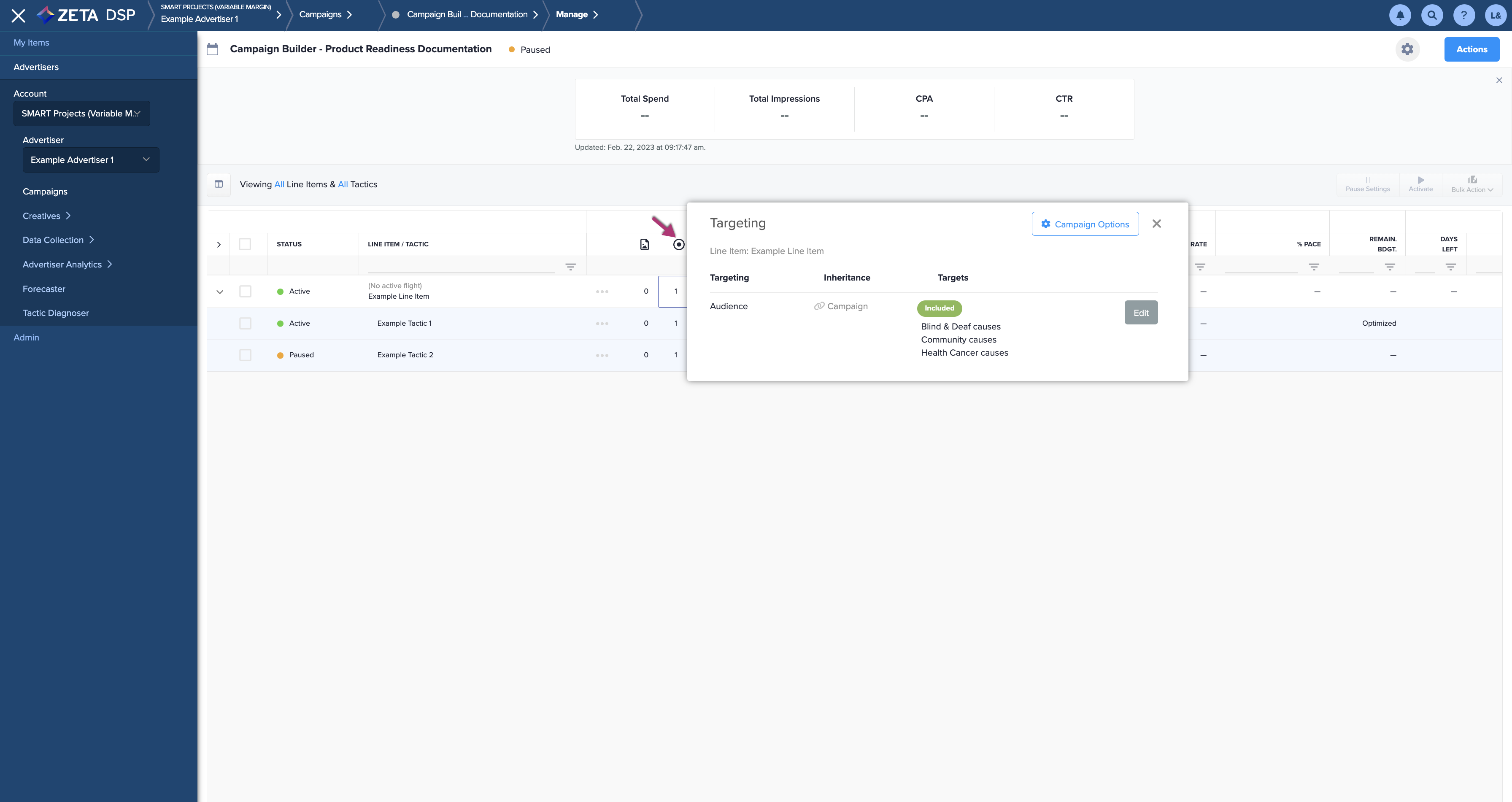You can directly make edits to the targeting for the line item or tactic that is currently being viewed by clicking on Edit.