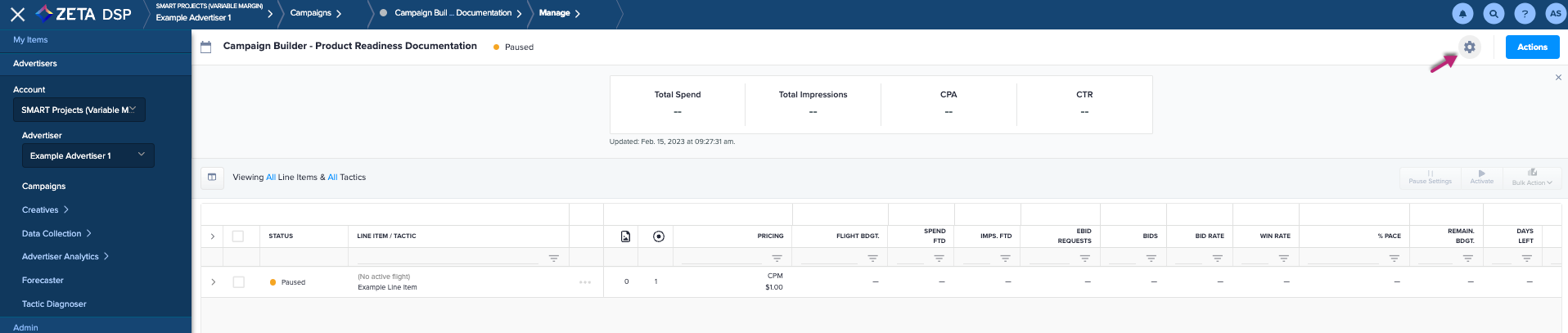 Click on the gear icon in the upper-right corner of the Campaign Grid to open the Campaign Builder and manage all campaign settings.