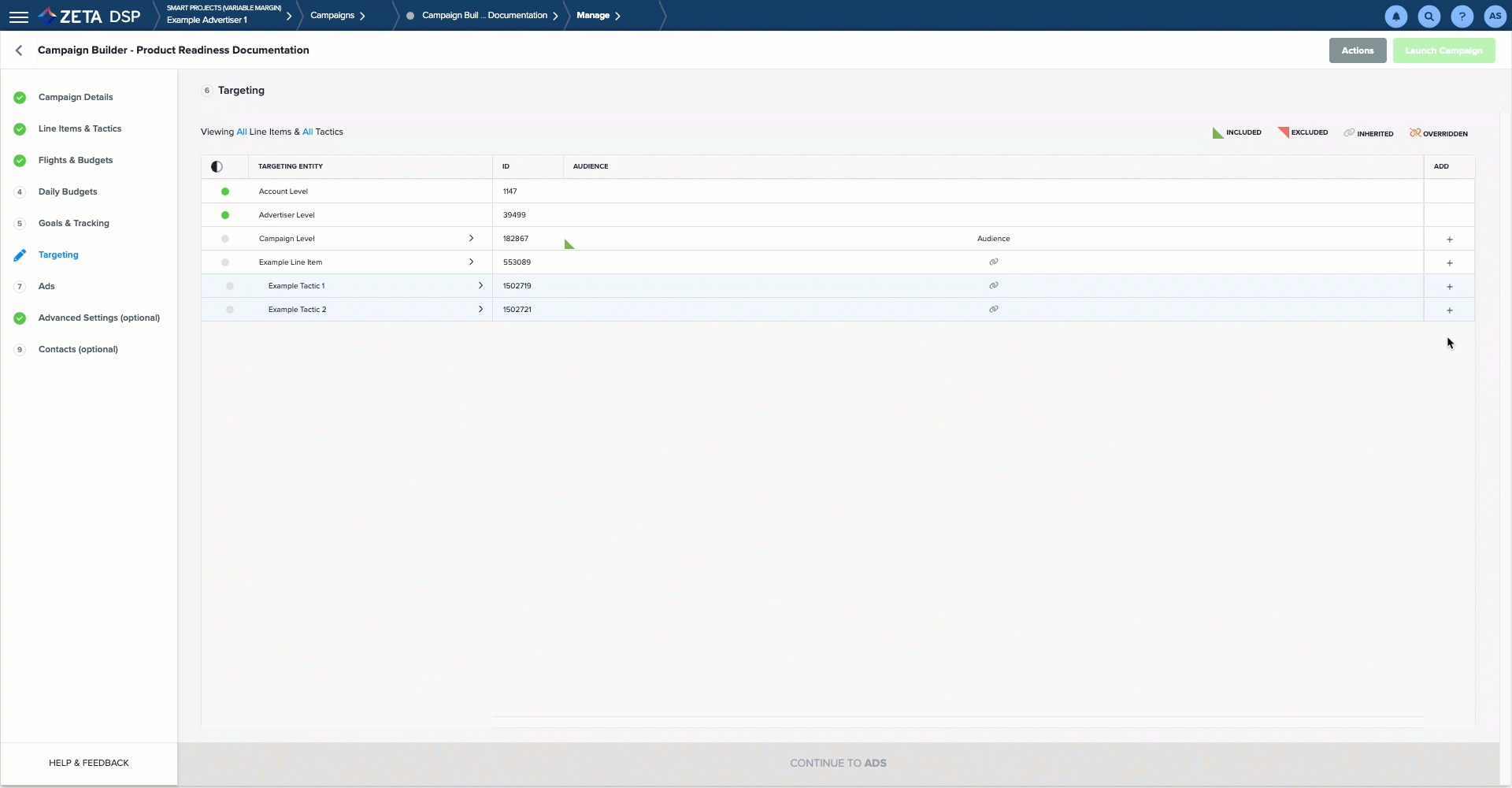 1. Within the Targeting tab of the Campaign Builder, the Targeting grid appears. Click on the