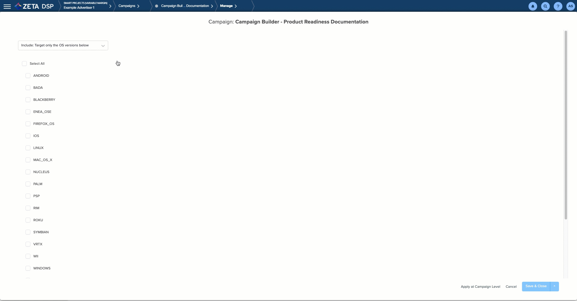 OS & OS Version Targeting