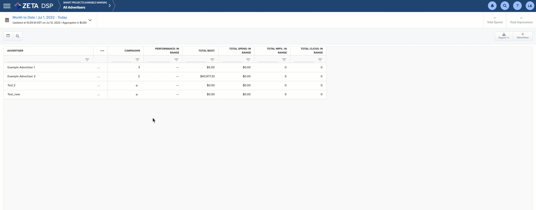 At the Advertiser level, you can view data for all campaigns for the selected Advertiser.