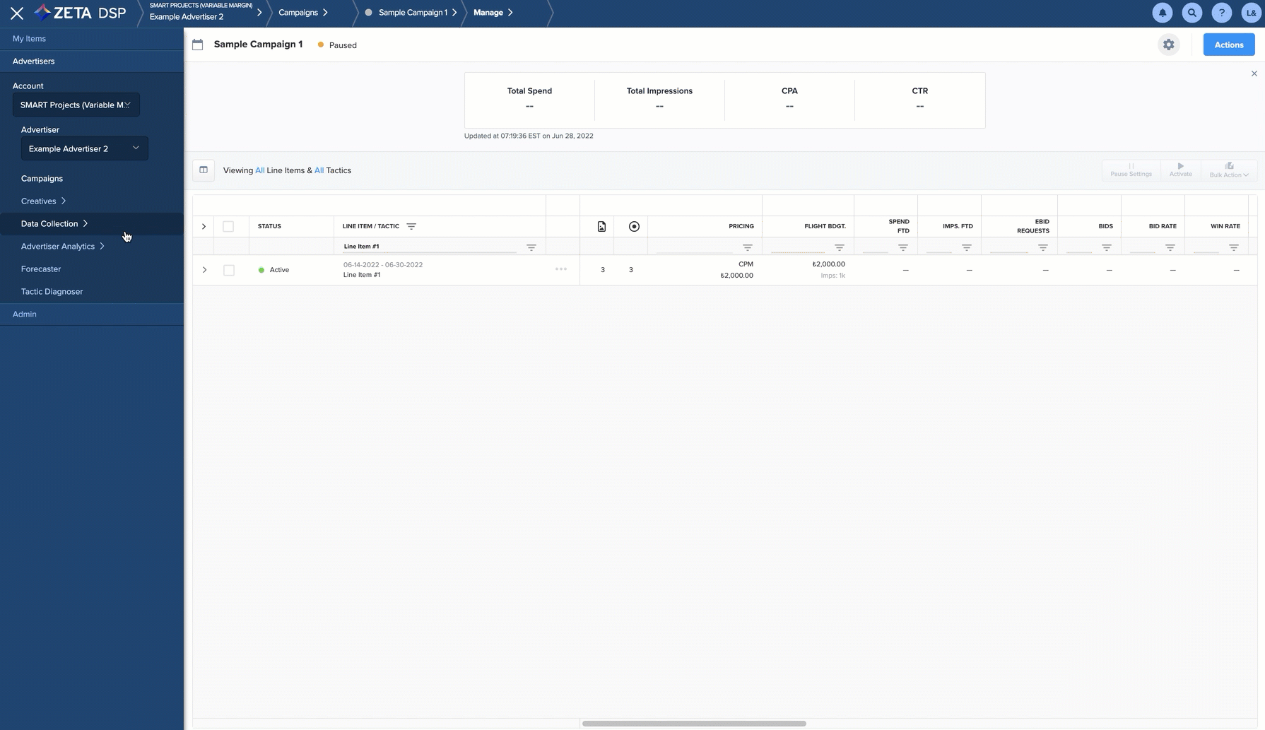 1. From the menu on the left, choose the Account and Advertiser from the respective dropdowns.