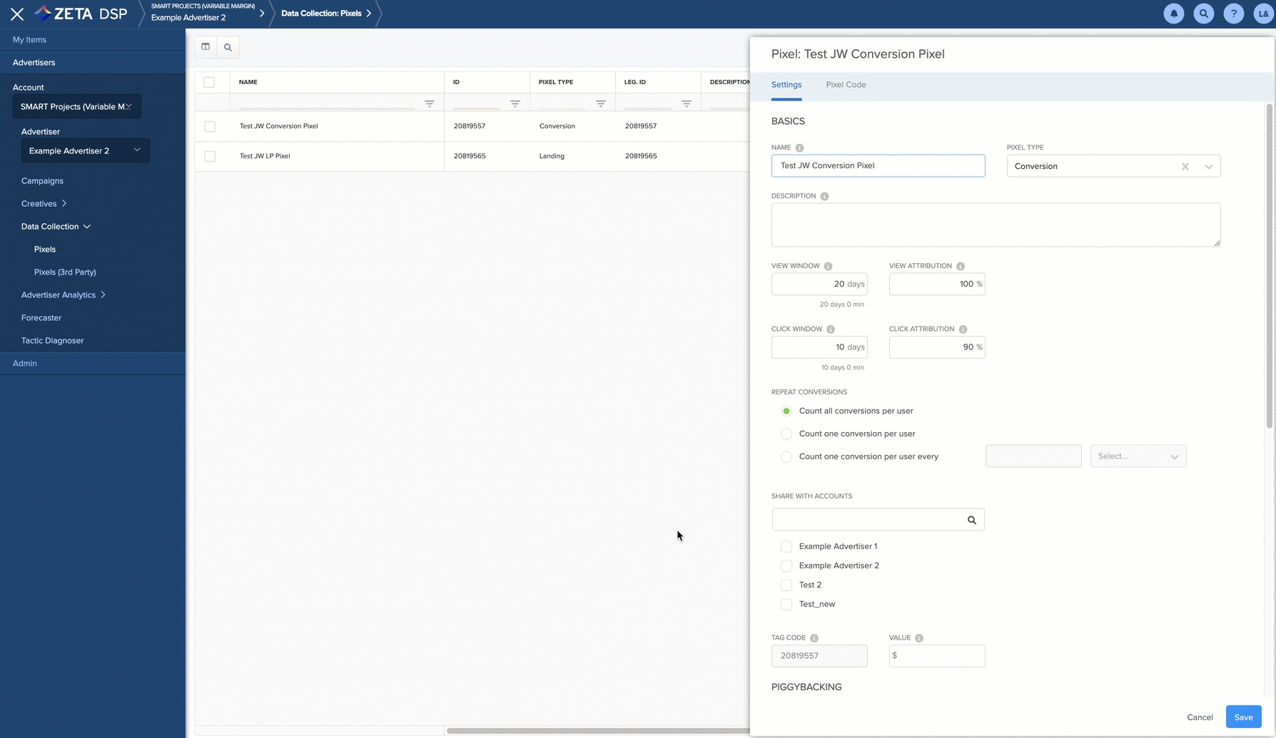 There are times when a specific pixel and its learnings from one Advertiser can be used on campaigns under another Advertiser. One such instance where sharing pixels between Advertisers may benefit campaigns is when the user’s campaigns are split between at least two Advertisers to manage different types of campaigns (holiday vs non-holiday, brand 1 vs brand 2, and more). In this scenario, there would be value in sharing the general landing pixel from the user’s main homepage across all related Advertisers so all the campaigns can benefit from the single pixel’s data.