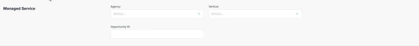 Select the Agency, Vertical, and Opportunity ID to choose who manages your campaign.