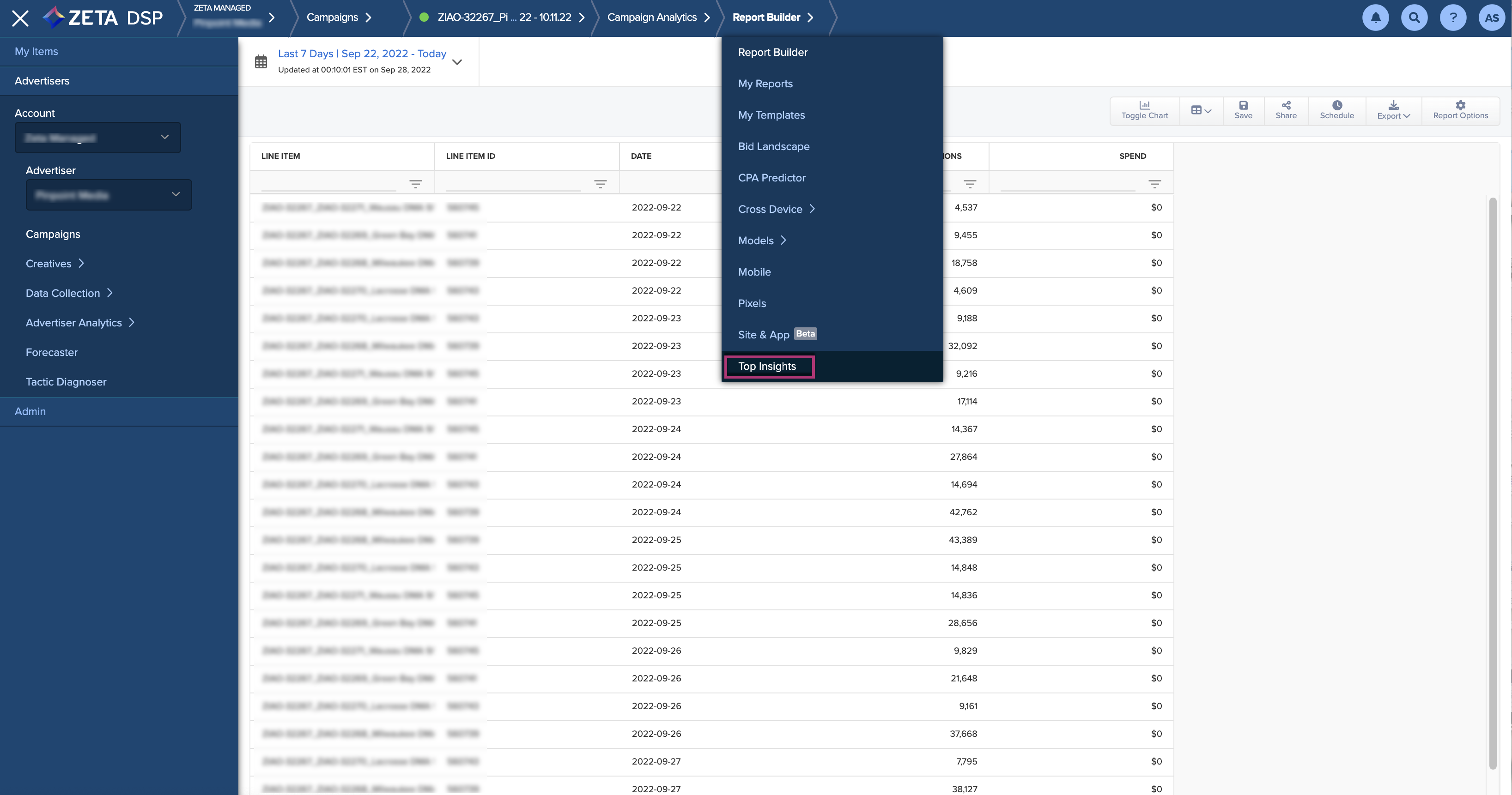 Zeta Impressions: Generate insights against impressions delivered by Zeta campaigns.