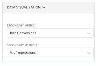 Expand the Data Visualization pane. The secondary metrics provide additional context to the chart by showing incremental and percentage values for each attribute and data source. Select the metrics displayed in the two right-most columns of the report.