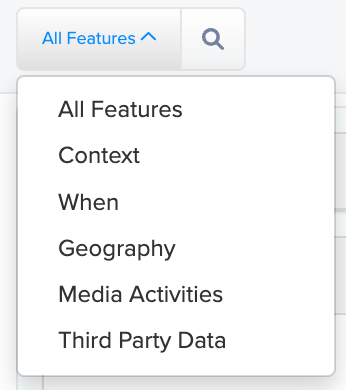 1. Click on the All Features dropdown at the upper-left corner to select a specific Feature of attributes to display. Select All Features to show all attributes in all Features.