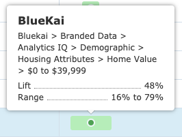 When the attribute is from a third-party, this combines lift with delivery to illustrate the amount of additional converters or clickers that can be reached by delivering to this attribute, assuming a fixed rate of response and impression delivery.