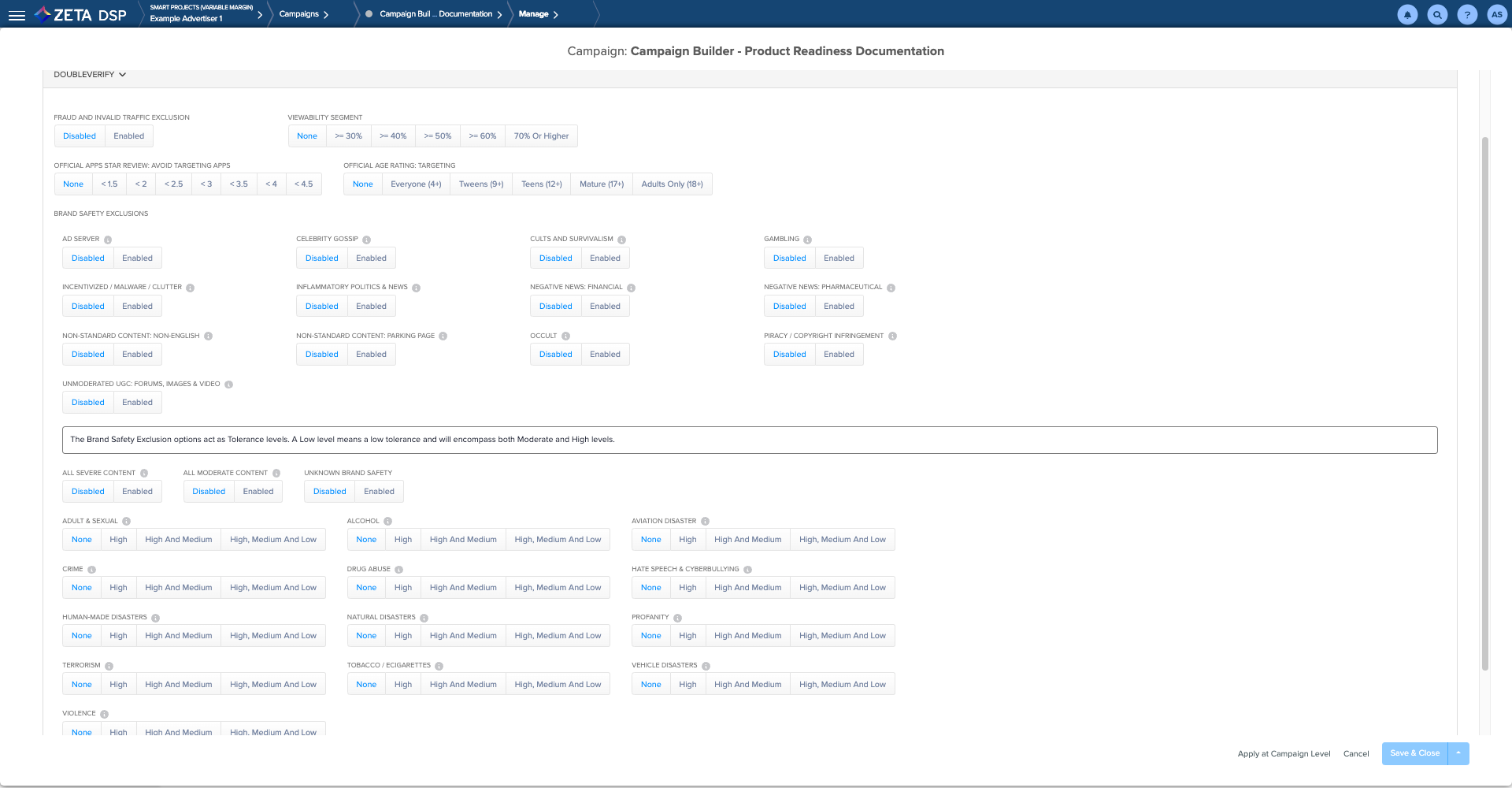 Enable Fraud and Invalid Traffic Exclusion to block your campaign from serving ads on any sites designated as fraudulent by DoubleVerify.