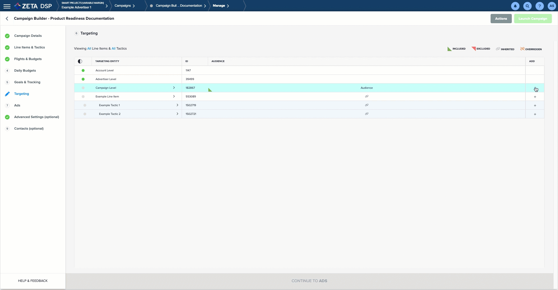1. Within the Targeting tab of the Campaign Builder, the Targeting grid appears. Click on the