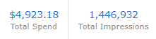 The upper-right corner of the Advertiser's Campaign Grid shows the Total Spend and Total Impressions. These numbers reflect the displayed date range.